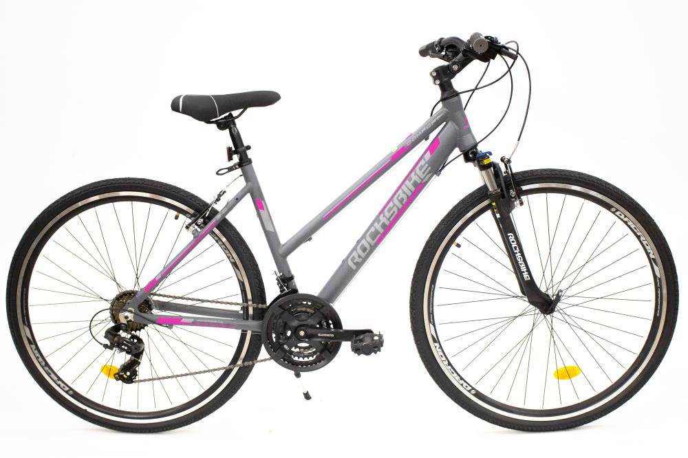 Rocksbike Comfort 3.0 | Adults | MTB | Wheel size 28″ | Number of speeds 21 | Frame Alloy | Bicycle seat ZOOM 120 E-MLO | Brakes Aluminium V-shaped | Front gears 3 | Rear gears 7 | Rear derailleur SHIMANO RD-TY300D | Grey / Pink | Weight 14.9 kg